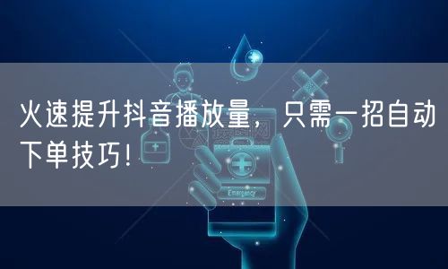 通过掌握一招自动下单技巧,你可以轻松实现抖音播放量的火速提升。优化你的抖音账号,提升短视频的曝光率,吸引更多观众,让流量持续增长。希望本文的介绍对你有所帮助,祝你在抖音平台上取得更大的成功!