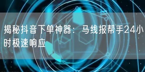 揭秘抖音下单神器:马线报帮手24小时极速响应
