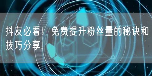 抖友必看!免费提升粉丝量的秘诀和技巧分享!