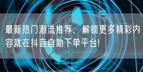 最新热门潮流推荐,解锁更多精彩内容就在抖音自助下单平台!