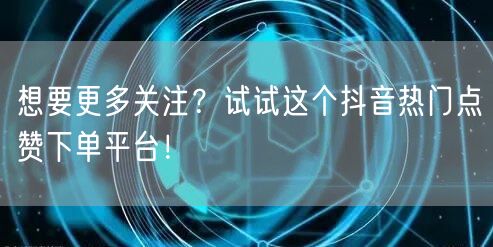 想要更多关注?试试这个抖音热门点赞下单平台!