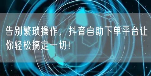 告别繁琐操作,抖音自助下单平台让你轻松搞定一切!