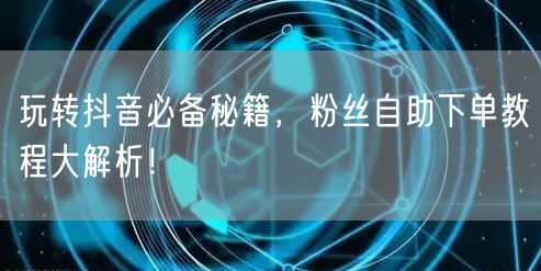 玩转抖音必备秘籍,粉丝自助下单教程大解析!
