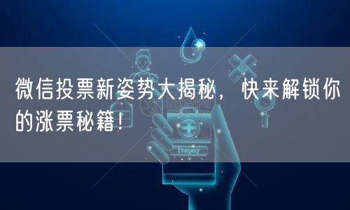 总之,掌握这些微信投票的新姿势和涨票秘籍,您就可以在微信的投票活动中轻松获胜,提升您的微信互动和社交媒体影响力。快来解锁您的涨票秘籍吧!