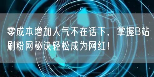 零成本增加人气不在话下,掌握B站刷粉网秘诀轻松成为网红!