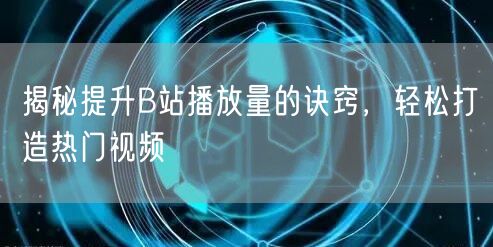 在B站这个充满活力的弹幕视频网站中,每一位UP主都渴望自己的视频能够获得高播放量,成为热门视频。那么,如何有效提升B站播放量,轻松打造热门视频呢?本文将为您揭秘其中的诀窍。