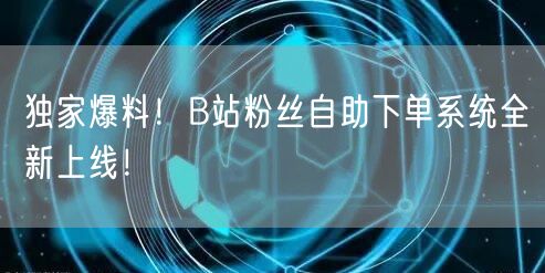 独家爆料!B站粉丝自助下单系统全新上线!