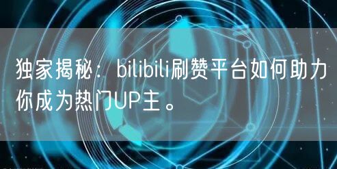 独家揭秘:bilibili刷赞平台如何助力你成为热门UP主。
