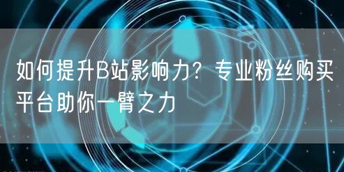 在当今数字化时代,视频平台如B站已成为年轻人聚集的热门社交媒体。对于个人或品牌而言,提升在B站的影响力是获取更多曝光、推广自身的重要渠道。本文将为你揭示如何通过专业粉丝购买平台,以及其他推广策略来提升在B站的影响力。