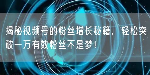 揭秘视频号的粉丝增长秘籍,轻松突破一万有效粉丝不是梦!