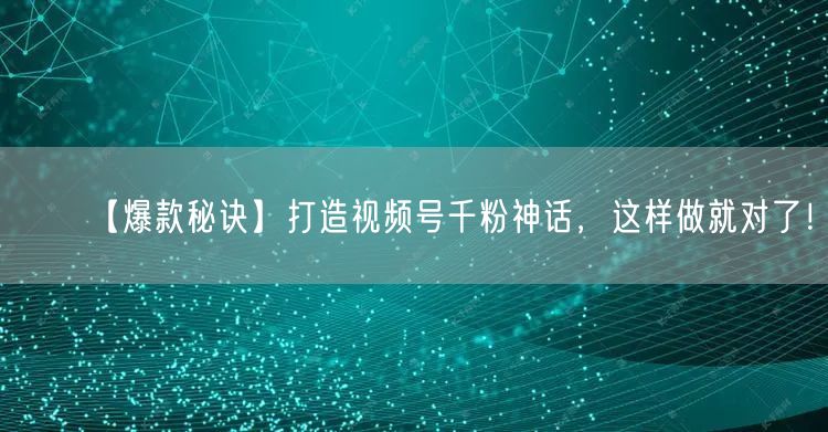 【爆款秘诀】打造视频号千粉神话,这样做就对了!