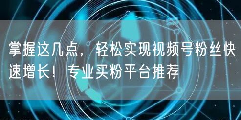 掌握这几点,轻松实现视频号粉丝快速增长!专业买粉平台推荐