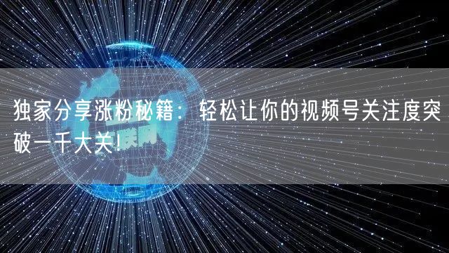 你是否在苦苦追求视频号的关注度?想要轻松突破一千大关,却又找不到有效的方法?今天,我来为大家分享一些独家涨粉秘籍,助你轻松实现目标!