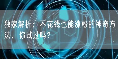 独家解析:不花钱也能涨粉的神奇方法,你试过吗?