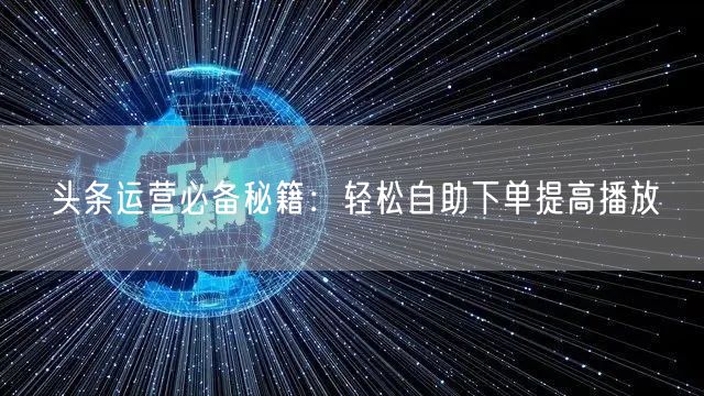 在当今信息爆炸的时代,头条运营已成为众多自媒体人关注的焦点。如何轻松自助下单并提高播放量,成为了每一个头条创作者渴望掌握的技能。本文将为你揭示头条运营必备秘籍,助你在激烈的竞争中脱颖而出。
