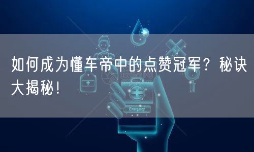通过汽车知识的储备、社交技巧的提升以及个人魅力的展现,你将有望在懂车帝平台中成为点赞冠军。记住,持之以恒的努力和不断的学习是成功的关键。