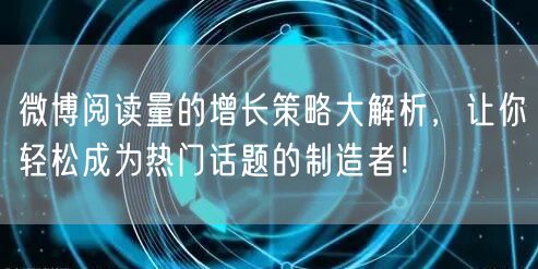 通过本文的解析和探讨,相信读者已经对微博阅读量的增长策略有了更深入的了解。只要掌握其中的方法和技巧,轻松成为热门话题的制造者并非难事。
