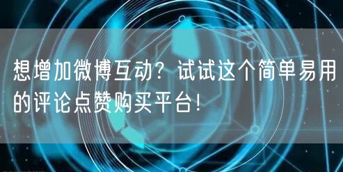 想增加微博互动?试试这个简单易用的评论点赞购买平台!