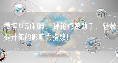 微博互动利器:评论点赞助手,助你轻松提升影响力指数!通过这款工具,你可以更有效地进行微博营销和社交媒体推广,增加曝光率,提高粉丝互动。赶快尝试,让你的微博内容在社交媒体中脱颖而出吧!